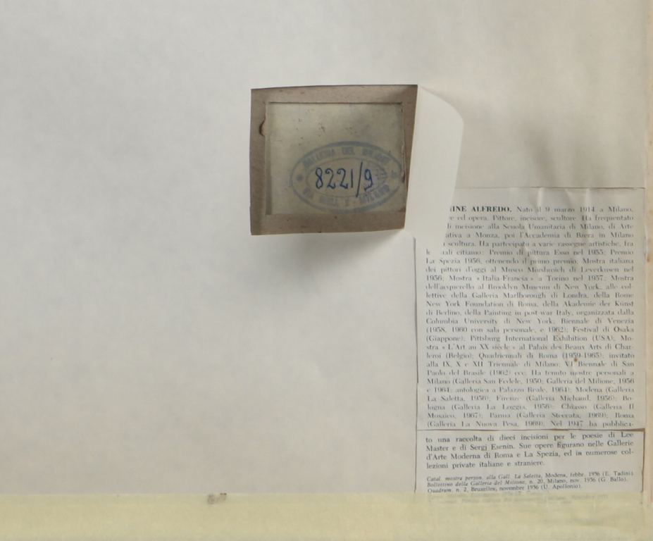 on the reverse: stamp of Galleria del Milione, Milan