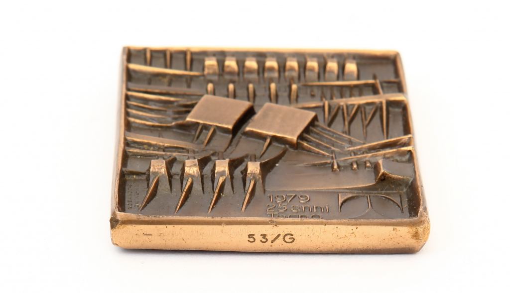 ARNALDO POMODORO (1926-) Medaglia 25 anni TECNO 1979bronzo cm 6x5 tiratura...