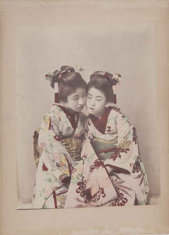 ANONIMO (-) Geishefine '800stampa all'albumina acquerellata a mano incollata...