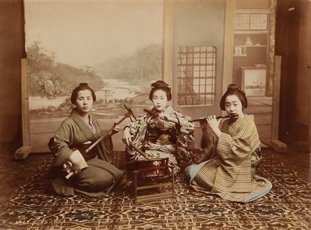 ANONIMO (-) Geishe con strumentifine '800stampa all'albumina acquarellata a...