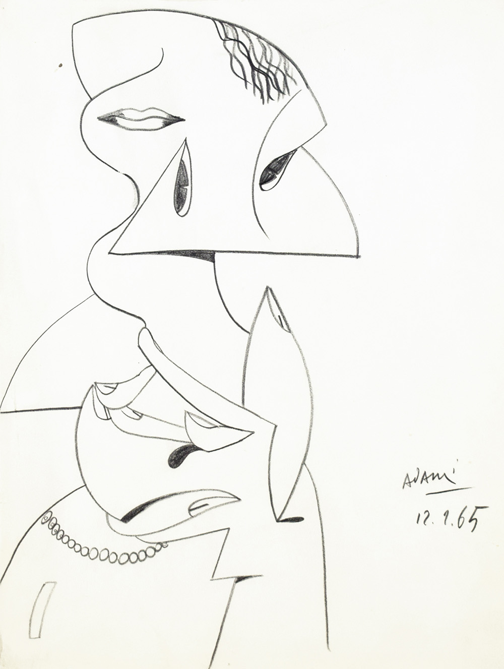VALERIO ADAMI (Bologna 1935), senza titolo, 1965 disegno a carboncino su carta riportata su tavola, 40x30 firma e data in basso a destra