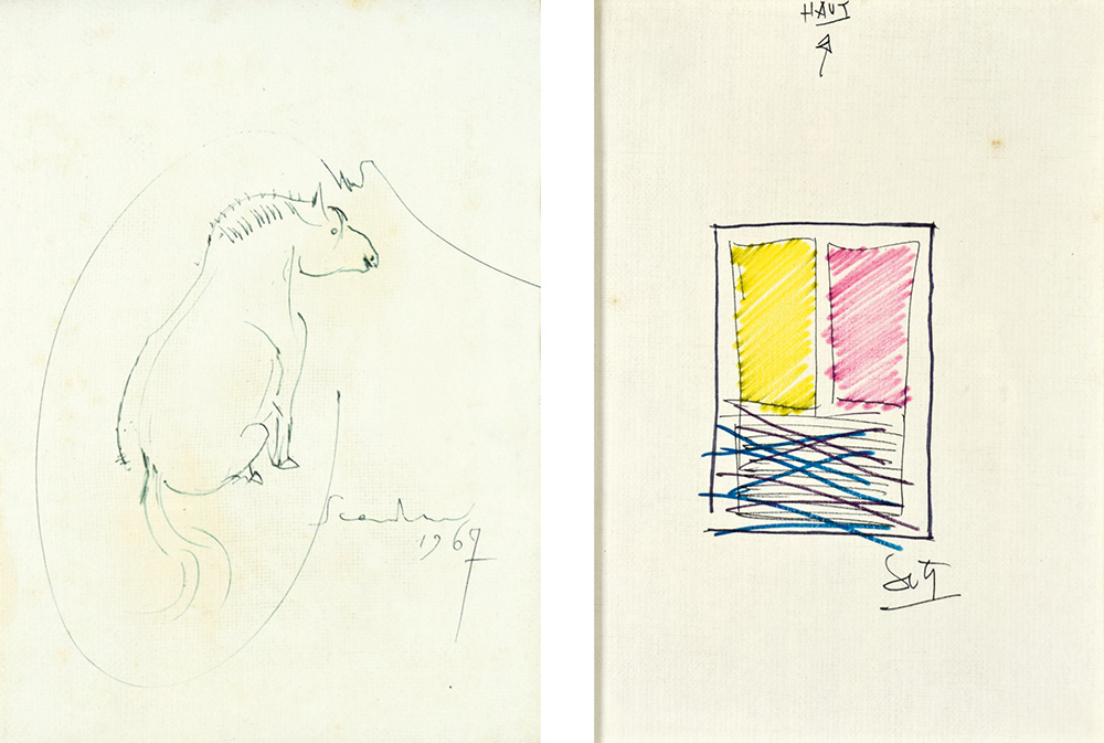 EMILIO SCANAVINO, JESUS RAFAEL SOTO (Genova 1922 - Milano 1986, Ciudad 1923 - Parigi 2005), Cavallo 1967 - Composizione, lotto di 2 tecniche miste su carta intelata, 33x23 cad. entrambi firmati in basso (Scanavino datato 1967 in basso a destra) provenienza: collezione Deana trattoria La Colomba Venezia