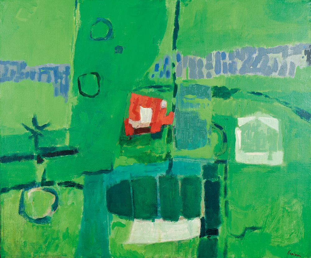 ENRICO PAULUCCI (Genova 1901 - Torino 1999), Primaverile, (primi anni' 60) olio su tela, 75,5x90 firma in basso a destra esposizioni: XXXIII Biennale Internazionale d'Arte di Venezia 1966 - etichette al retro