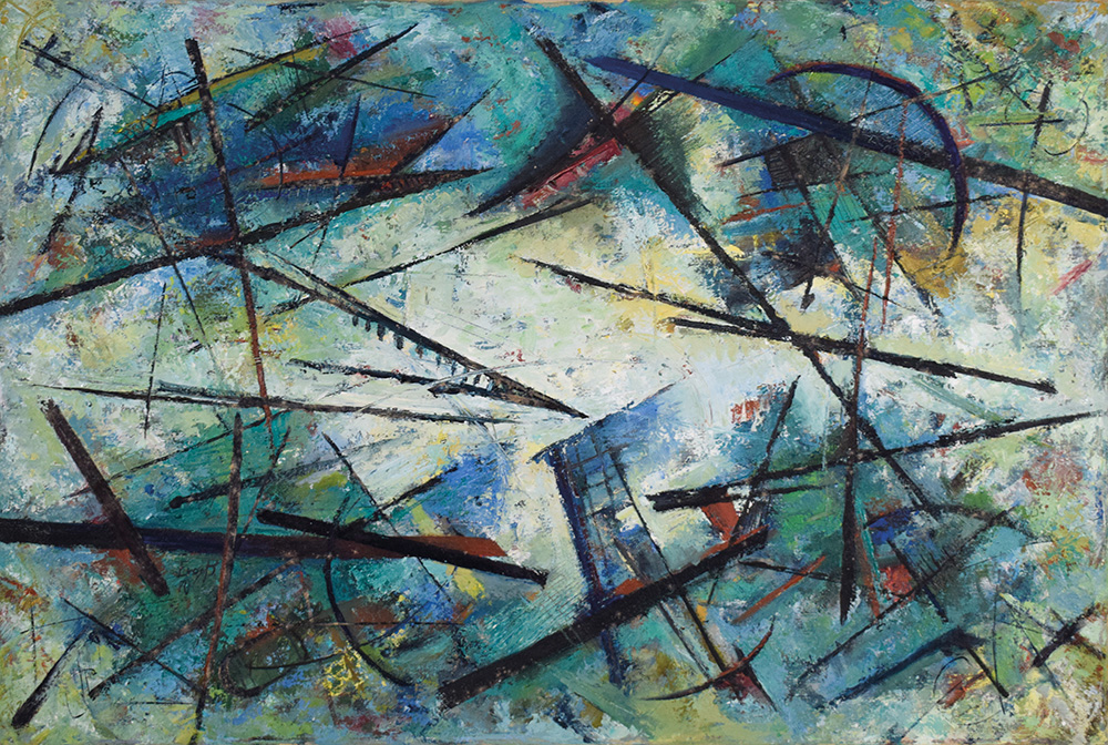 EROS BONAMINI (Verona 1942 - 2012), senza titolo, 1970 olio su tela, 60x90 firma e data in basso a sinistra esposizioni: Galleria la Sfera Vittorio Veneto - timbro al retro