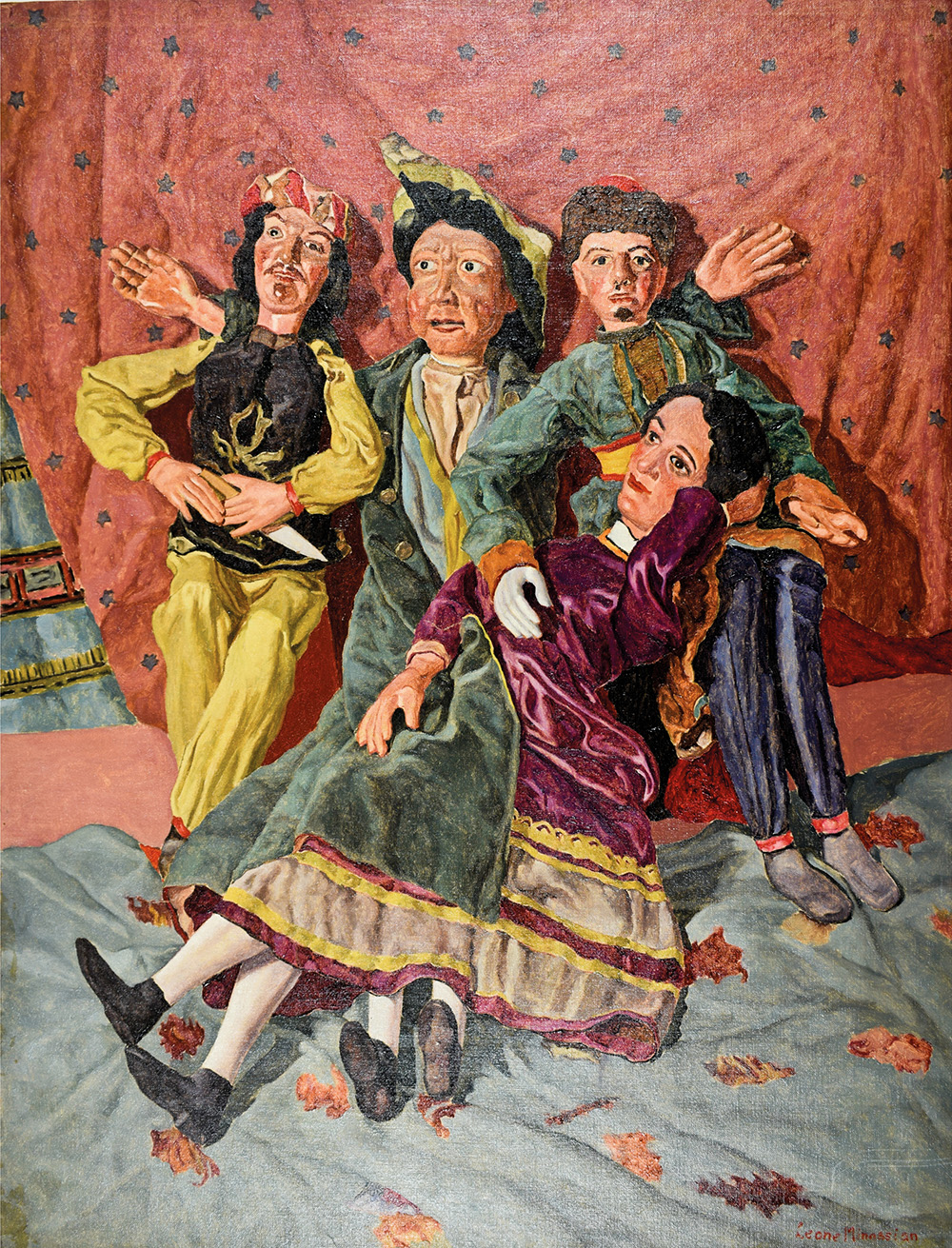 LEONE MINASSIAN (Costantinopoli 1905 - Venezia 1978), Quattro marionette, (anni '40) olio su cartone telato, 85x66 firma in basso a destra provenienza: eredi MInassian