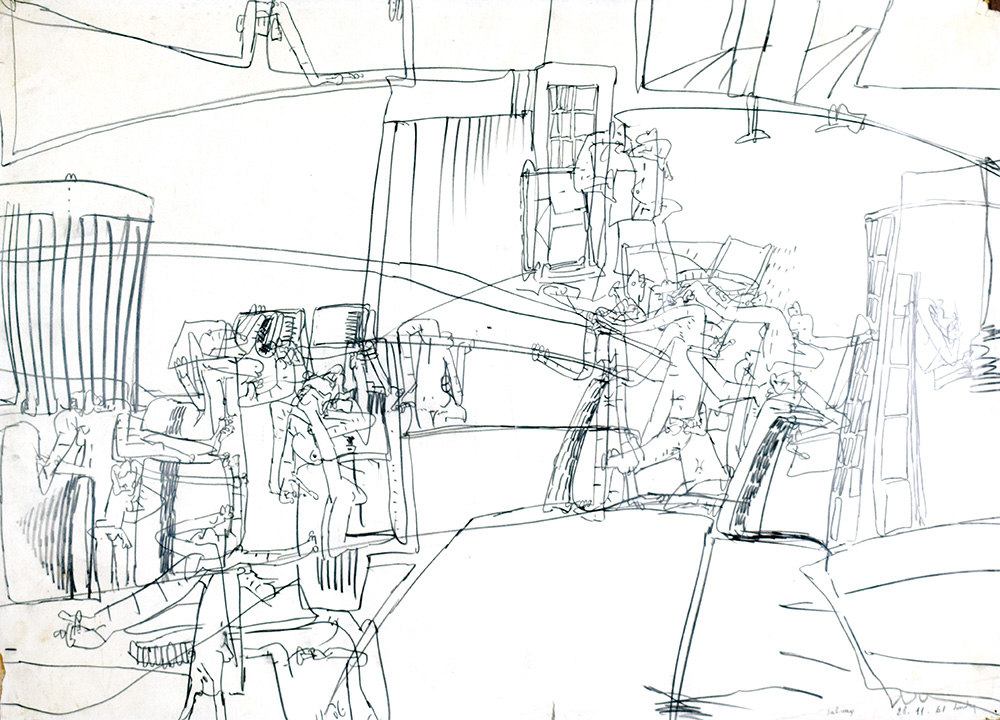 VALERIO ADAMI (Bologna 1935), Subway Londra, 1961 tecnica mista su carta, 48x66 data e titolo in basso a destra acquisito dall'attuale proprietario direttamente dall'Artista