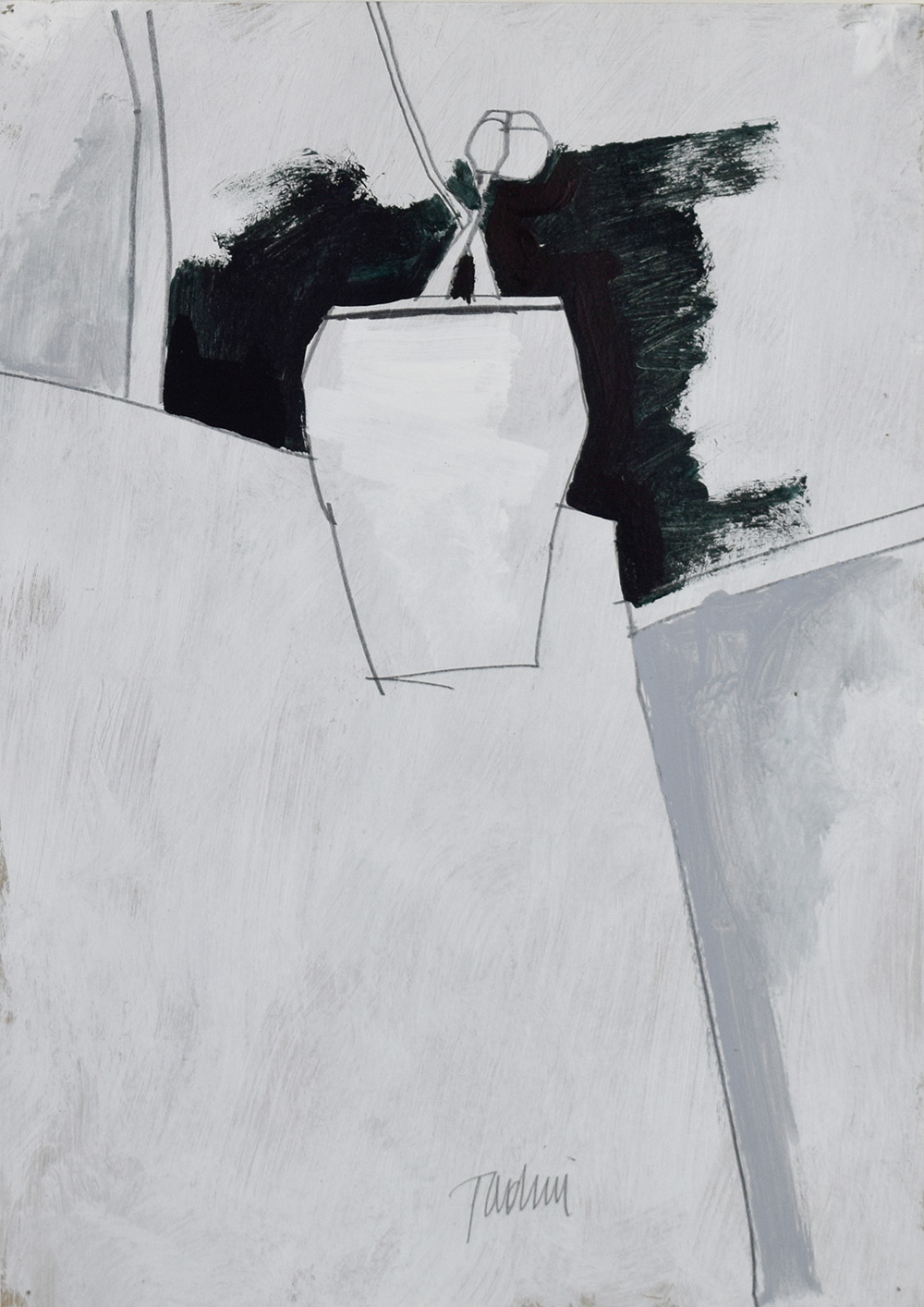 EMILIO TADINI (Milano 1927 - 2002) Fiore in bianco e nero, acrilici e tecnica mista su cartoncino, 42x30 firma in basso al centro