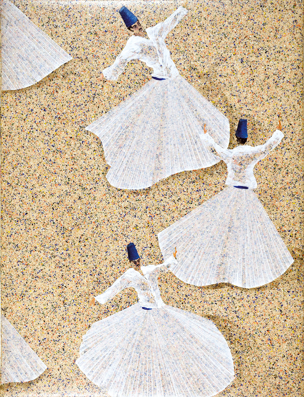 ALDO MONDINO (Torino 1938 - 2005) Dervisci, 2001 olio su linoleum, 80x60 firma al retro