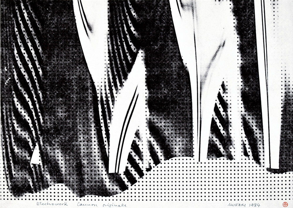 BRUNO MUNARI (Milano 1907 - 1998) senza titolo, 1984 xerografia in bianco e nero, 21x29 firma e data in basso a destra, "Electrowork Cannon originale" in basso a sinistra esposizioni: Corraini Arte Contemporanea Mantova; "Munari" Villa Reale di Monza 1991; Galleria La Scaletta Reggio Emilia 2010 con relativa pubblicazione sul catalogo della mostra