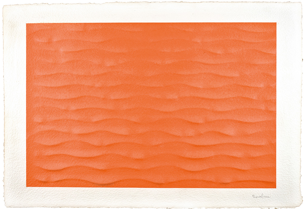 AGOSTINO BONALUMI (Vimercate 1935 - 2013) Ondulazione arancione, 1986 tecnica mista su carta a mano estroflessa riportata su tela , 63x90 firma in basso a destra titolo al retro