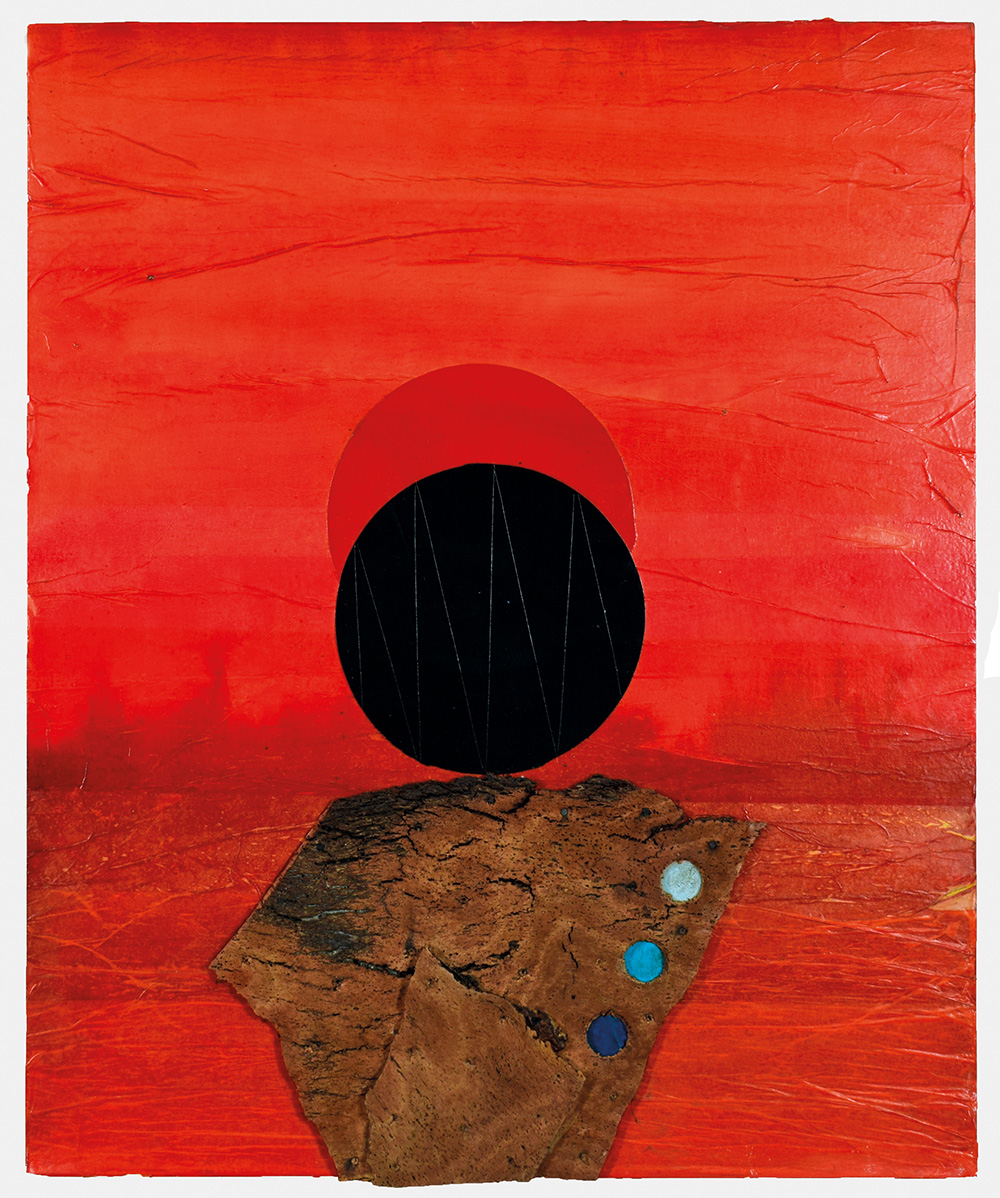 ROBERTO CRIPPA (Milano 1921 - Bresso 1972) senza titolo, (anni '70) olio collage e sughero su tavola, 73x60 firma al retro