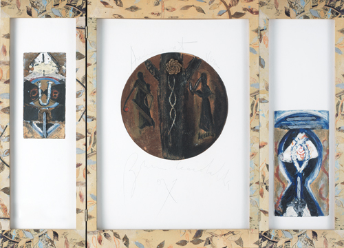 BRUNO CECCOBELLI Montecastello Vibio (Pg) 02/09/1952 - Anima et Vera, trittico multiplo su carta cm. 65x45 con due parti incernierate (aperto totale cm. 65x90), (tiratura in circa 50 esemplari), cornice ricoperta da carta litografata, firma in basso nella parte centrale.