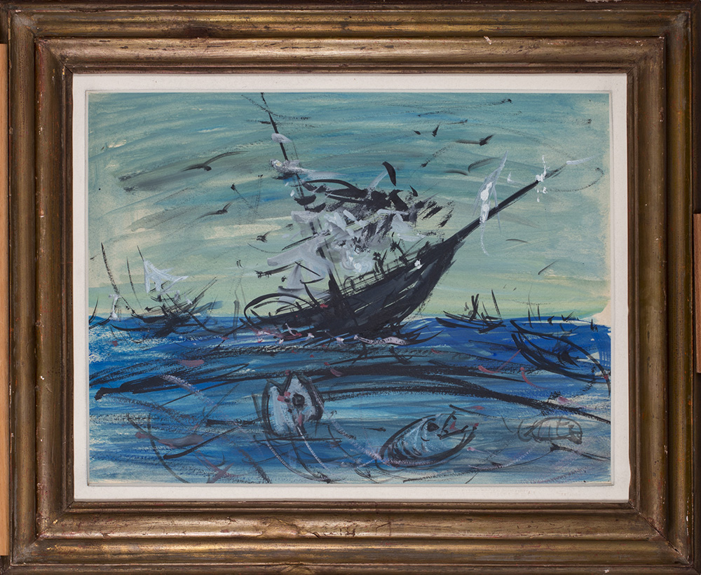 LUIGI SPAZZAPAN (1889-1958)Il naufragioTecnica mista su cartacm 50x36Firma al...