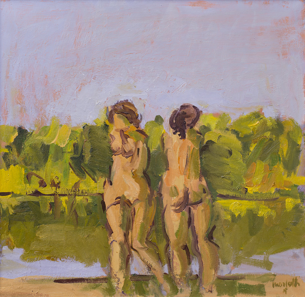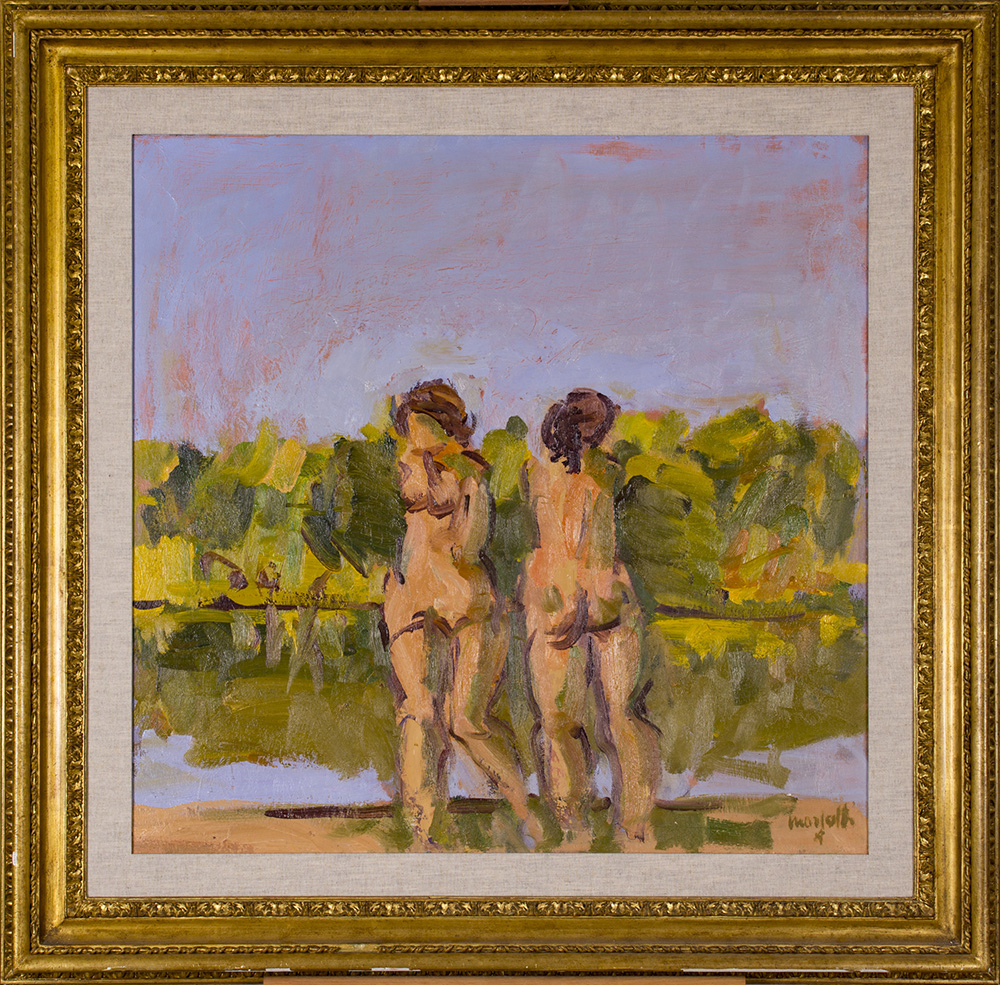 ENNIO MORLOTTI (1910-1992)Bagnanti ad Oggiono N.3, 1989Olio su telacm...