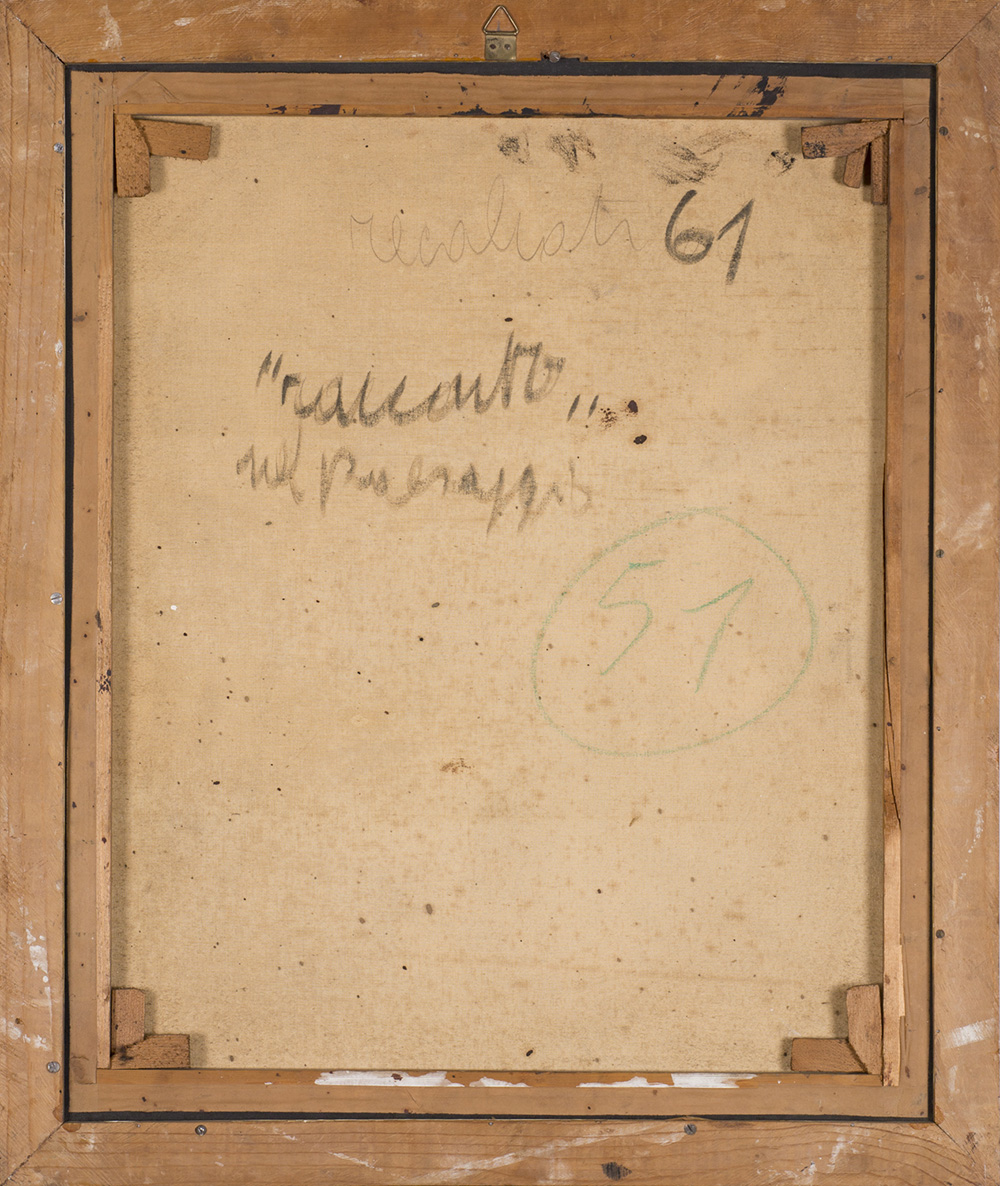 ANTONIO RECALCATI (1938)Racconto nel paesaggio, 1961Olio su telacm...