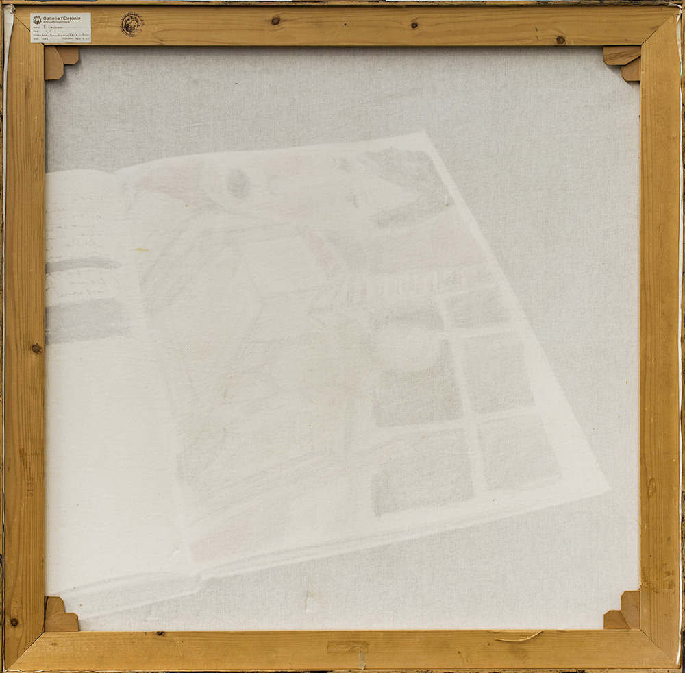 Cartiglio e timbro della Galleria L'Elefante (TV) al retro