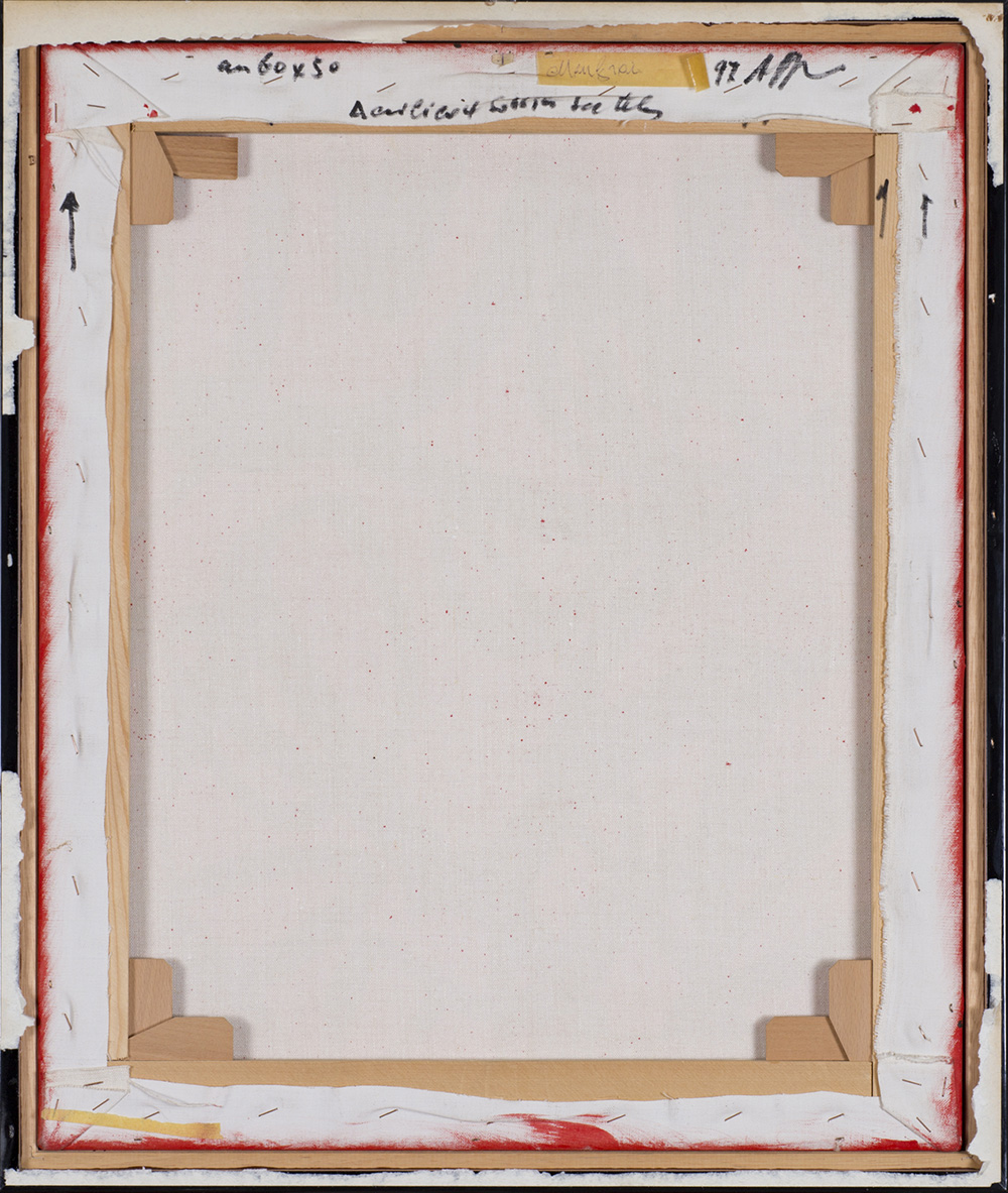 Firma, titolo, misure, tecnica e indicazioni per il posizionamento al retro