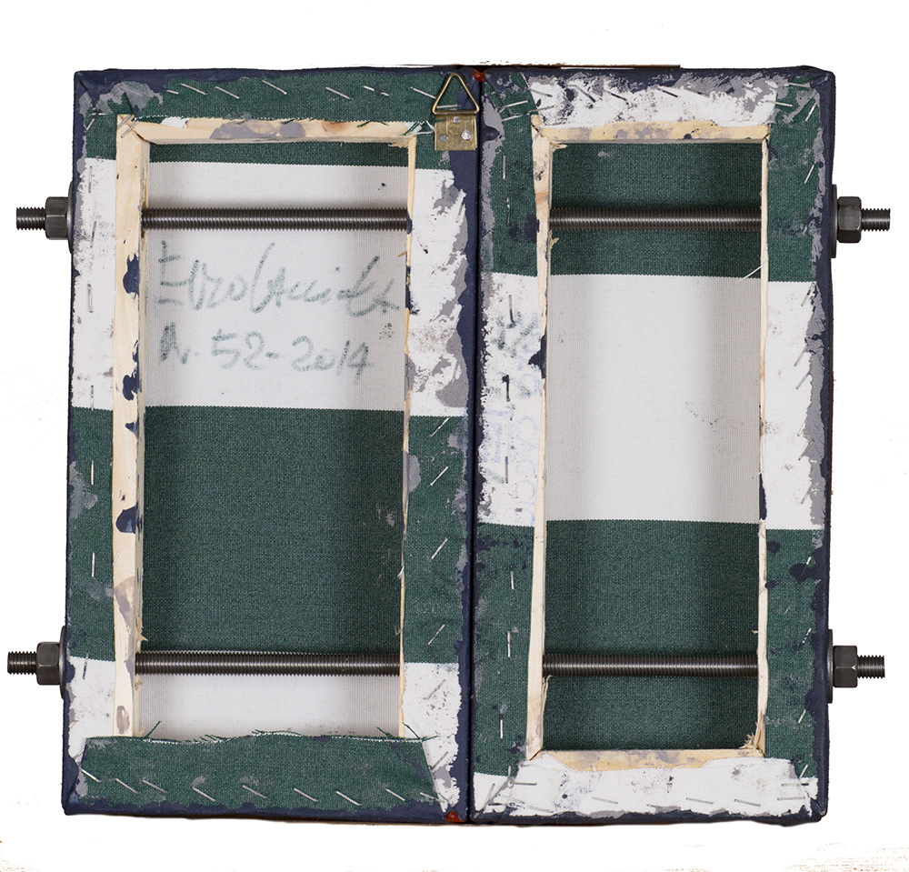 ENZO CACCIOLA (1945)N.52, 2014Multigum su tela e ferrocm 30x31x4Firma, titolo...