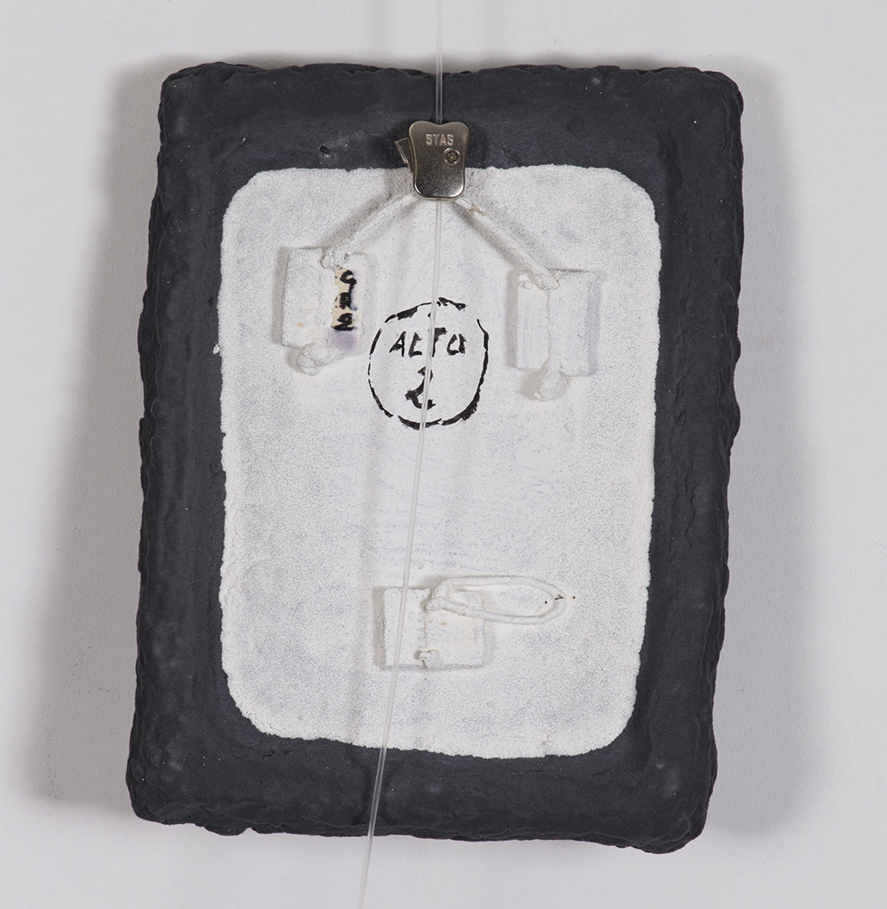 Firma, titolo, datazione, località (Milano), misure, indicazioni per il posizionamento e iscrizione "Opera di N.2 elementi" al retro del primo elemento