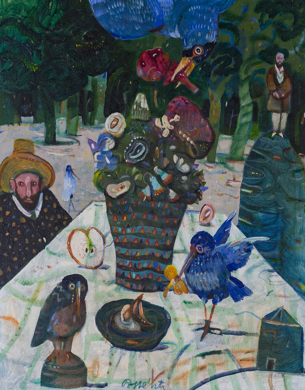 ANTONIO POSSENTI (1933-2016)Un cuculo, 2004Olio su cartone telatocm...