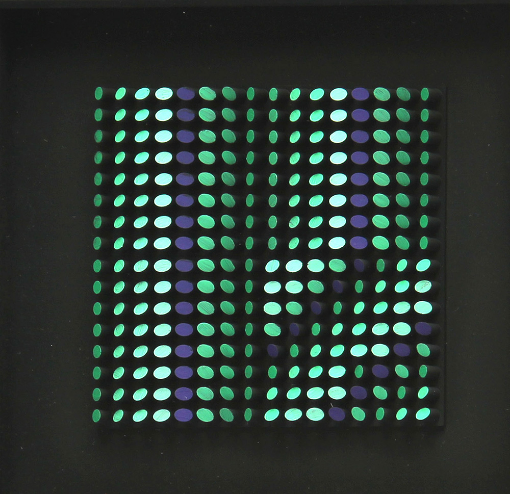 Franco COSTALONGA (Venezia 1933 ) Gradienti di luminosità CIL. SV. VioP 2005 cilindretti su tavola cm. 20 x 20La misura è riferita alla tavola Firma, titolo, firma, data "Costalonga, CIL.SV.VioP, F. Costalonga, 05" (al retro) Autentica dell'artista su fotografia