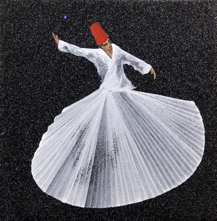Aldo MONDINO (Torino 1938-10-04 Torino 2005-03-10) Derviscio 2000 olio su linoleum cm. 40 x 40Firma "Mondino" (al retro) Autentica dell'Archivio Aldo Mondino, con n. 20151126172651