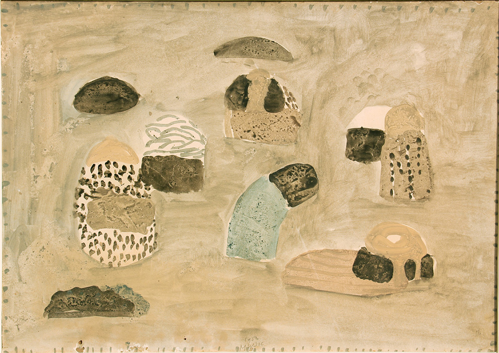 Anton Zoran MUSIC (Gorizia 1909-02-12 Venezia 2005-05-25) Collina dalmate 1953 tempera su carta applicata su tela cm. 50 x 70Data, firma "1953, Music" (in basso al centro) Etichetta e timbro della galleria Il Castello, Milano (al retro) Autentica della moglie Ida Cadorin Music