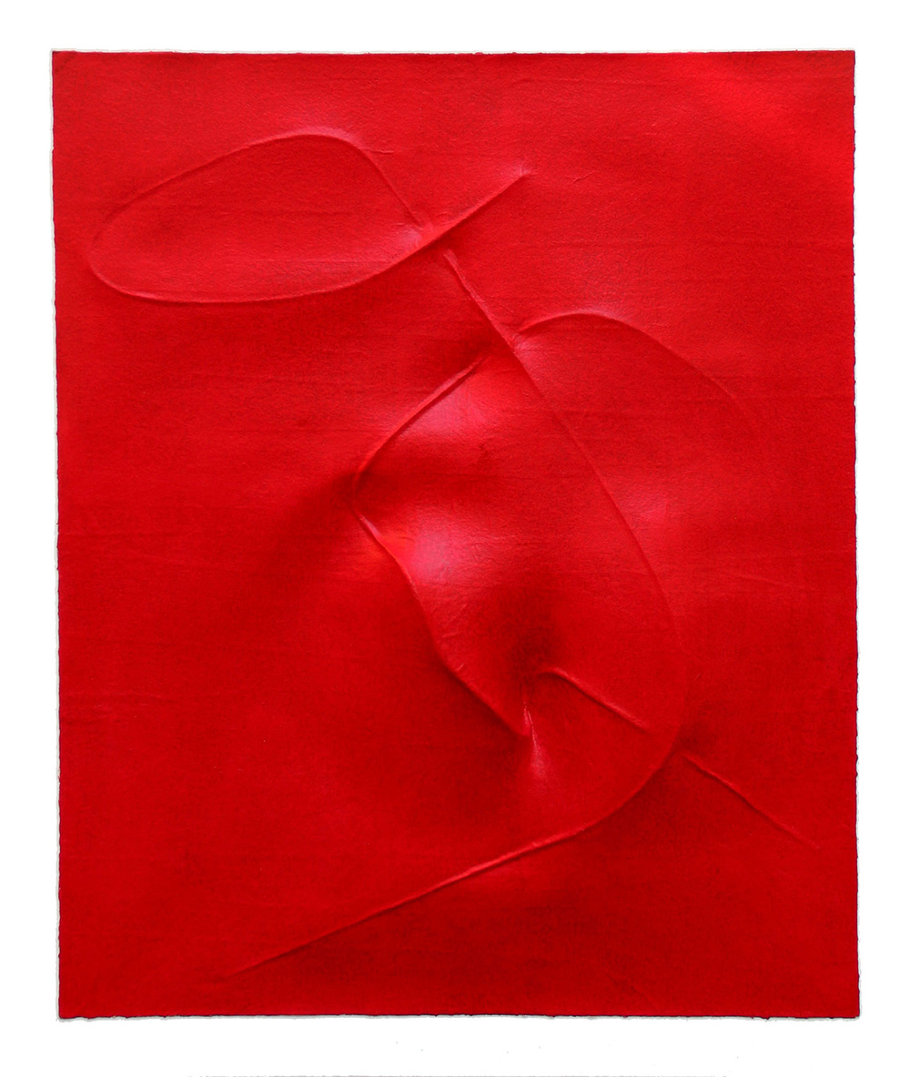Agostino BONALUMI (Vimercate (MI) 1935-07-10 Desio, 2013 ) Rosso anni 90 (1990 - 1999) tempera vinilica su carta estroflessa cm. 80 x 64.5Firma "Bonalumi" (in basso a destra)