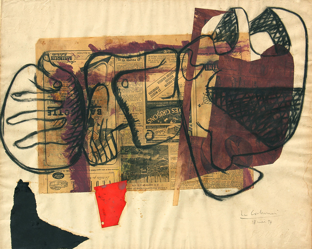 Charles-Edouard Jeanneret-Gris LE CORBUSIER (La Chaux-de-Fonds 1887 Roccabruna 1965) Mains, buste et coquillage 1954 collage e tecnica mista su cartoncino cm. 47.9 x 62.5Firma, data "Le Corbusier, 18 mai 54" (in basso a destra) Autentica a cura di Eric Mouchet, autore del catalogo ragionato delle opere di Le Corbusier pubblicato nel 2007