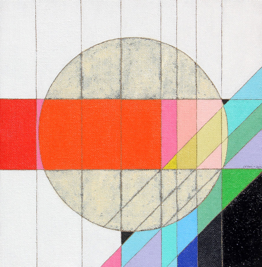 Eugenio CARMI (Genova 1920-02-17 Lugano, 2016 ) Piccolo cerchio in ansia 2008 acrilico e vernice su juta cm. 40 x 40Firma, data "Carmi, 2008" (al centro a destra) Firma, data "Carmi, 2008" (al retro) Autentica dell'artista su fotografia