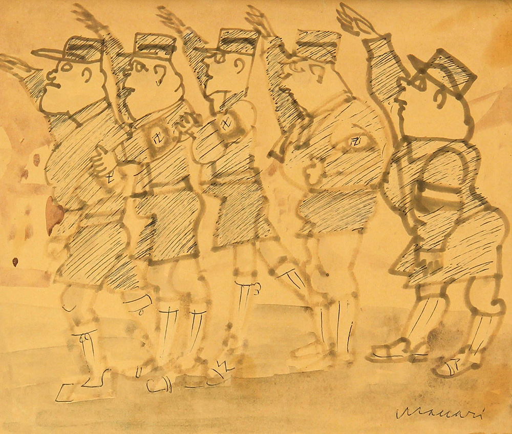 Mino MACCARI (Siena 1898-11-24 Roma 1989-06-16) Senza titolo anni 60 (1960 - 1969) tecnica mista su cartoncino cm. 26 x 31.5Firma "Maccari" (in basso a destra) Autentica dell'Archivio delle Opere del Maestro Mino Maccari, a cura di Marco Maccari, con n. 1595