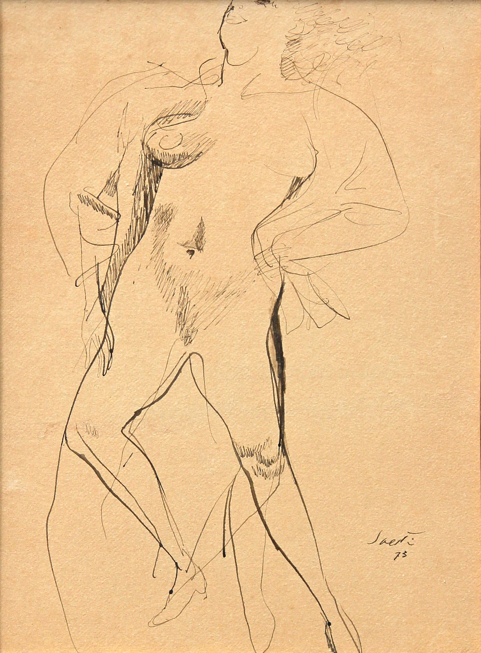 Bruno SAETTI (Bologna 1902-02-21 Bologna 1984-07-10) Nudino 1973 china su cartoncino cm. 50 x 35Firma, data "Saetti, 73" (in basso a destra)