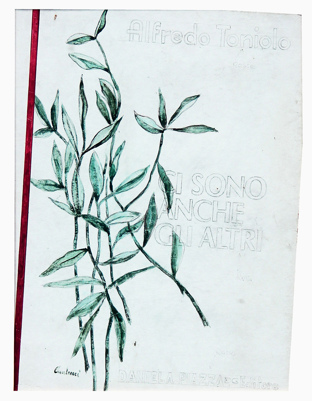 Enrico PAULUCCI (Genova 1901-10-03 Torino 1999-08-22) Progetto 1983 tecnica mista su cartoncino cm. 28.5 x 22A. Toniolo, "Ci sono anche gli altri", Daniela Piazza Editore, 1983, copertinaFirma "Paulucci" (in basso a sinistra) Autentica dell'Archivio Paulucci, con n. 550/P