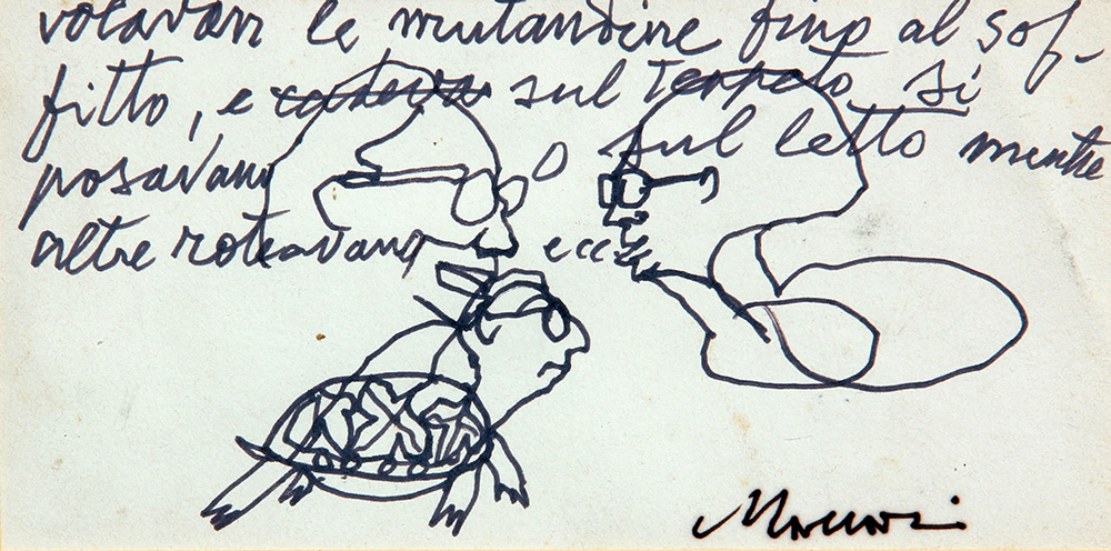 Mino MACCARI (Siena 1898-11-24 Roma 1989-06-16) Osservazioni anni 60 (1960 - 1969) pennarello su carta cm. 11 x 21"Mino Maccari" a cura di F. Basile, catalogo della mostra dal 22 settembre al 28 ottobre 2001, Padua Art Gallery Edizioni, p. 95Firma "Maccari" (in basso a destra) Certificato di provenienza di Meeting Art
