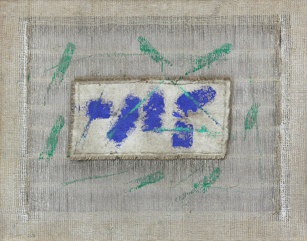 Salvatore EMBLEMA (Terzino, 1929 Terzino, 2006 ) Senza titolo 2005 terre colorate su tela di juta cm. 70 x 90Firma, data "Emblema, 05" (al retro) Autentica della moglie Raffaella Auricchio Emblema
