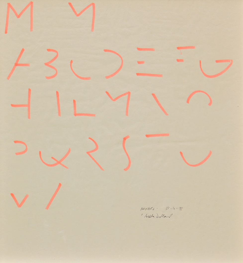 Bruno MUNARI (Milano, 1907 Milano, 1998 ) Studio di alfabeto 1991 evidenziatore su carta cm. 54 x 49 Firma, data, titolo "Munari, 15-4-91" (al retro) Autentica del figlio Alberto Munari in data 25/07/2017