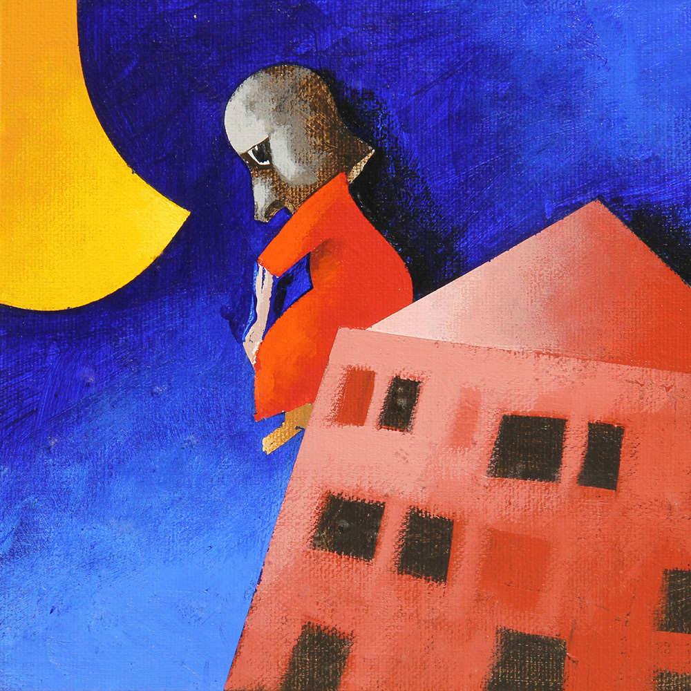Emilio TADINI (Milano 1927-06-05 Milano 2002-09-24) Oltremare 1992 olio su tela cm. 30 x 30Datazione doppia: 1992/1993 Firma, titolo "Tadini, Oltremare" (al retro) Autentica dell'artista su fotografia