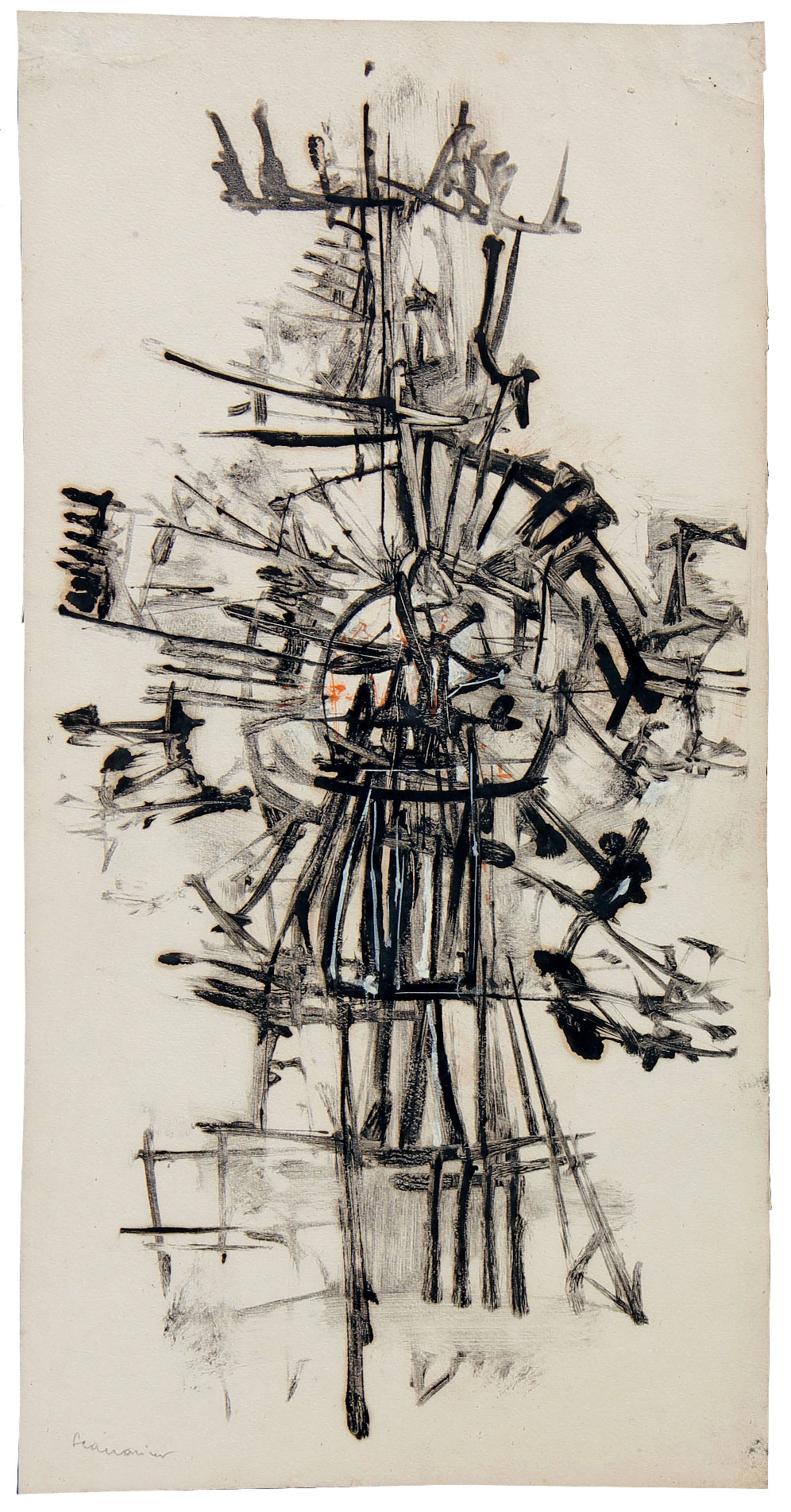 Emilio SCANAVINO (Genova 1922-02-28 Milano 1986-11-28) Senza titolo anni 50 (1950 - 1959) tecnica mista su carta cm. 57 x 27Firma "Scanavino" (in basso a sinistra)