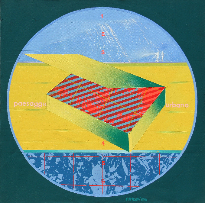 Fernando DE FILIPPI (Lecce 1940 ) Paesaggio urbano 1970 acrilico su tela cm. 60 x 60Firma, data "F. De Filippi" (in basso a destra)