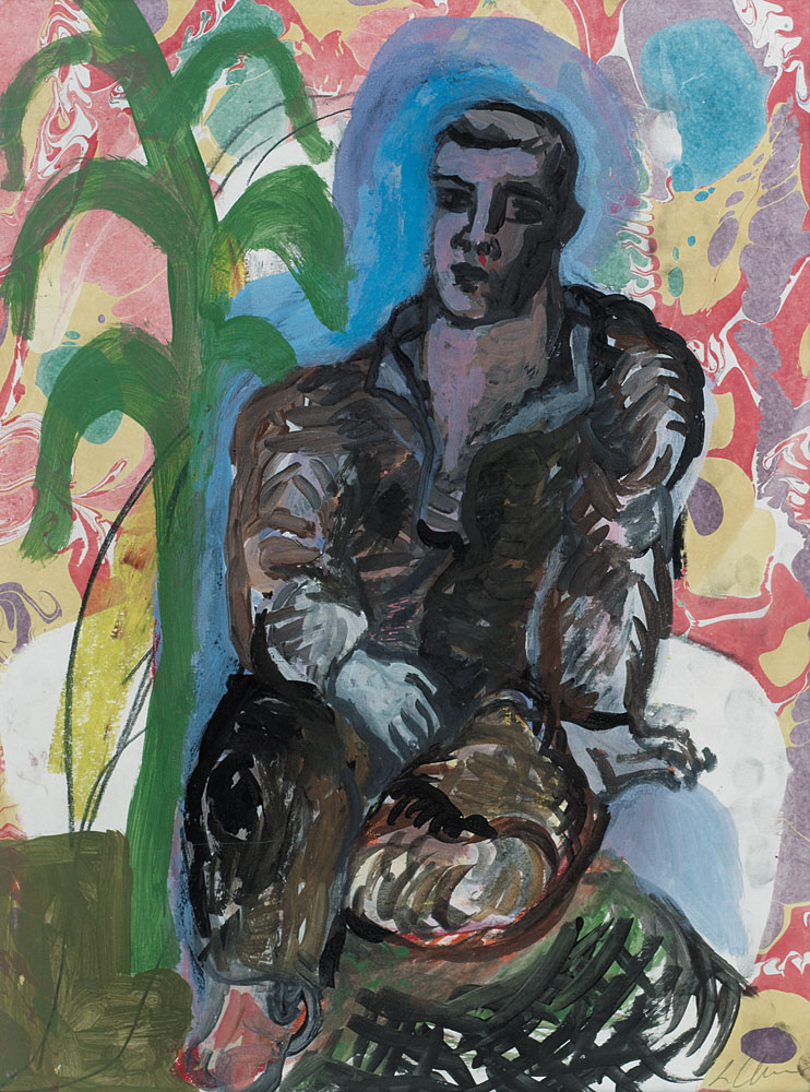 SANDRO CHIA Firenze 20/04/1946 - Senza titolo, tecnica mista su carta cm. 62x46, firma in basso a destra, dichiarazione d'autenticità dell'artista e Archivio Sandro Chia su foto.