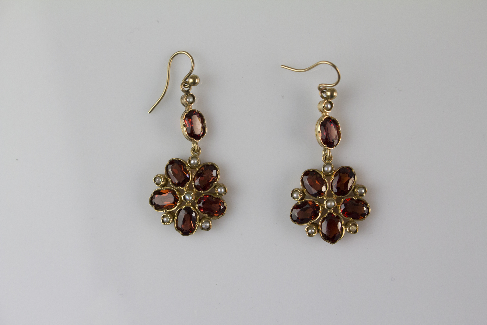 Orecchini inizi 800 in oro granati e perline. . . .
