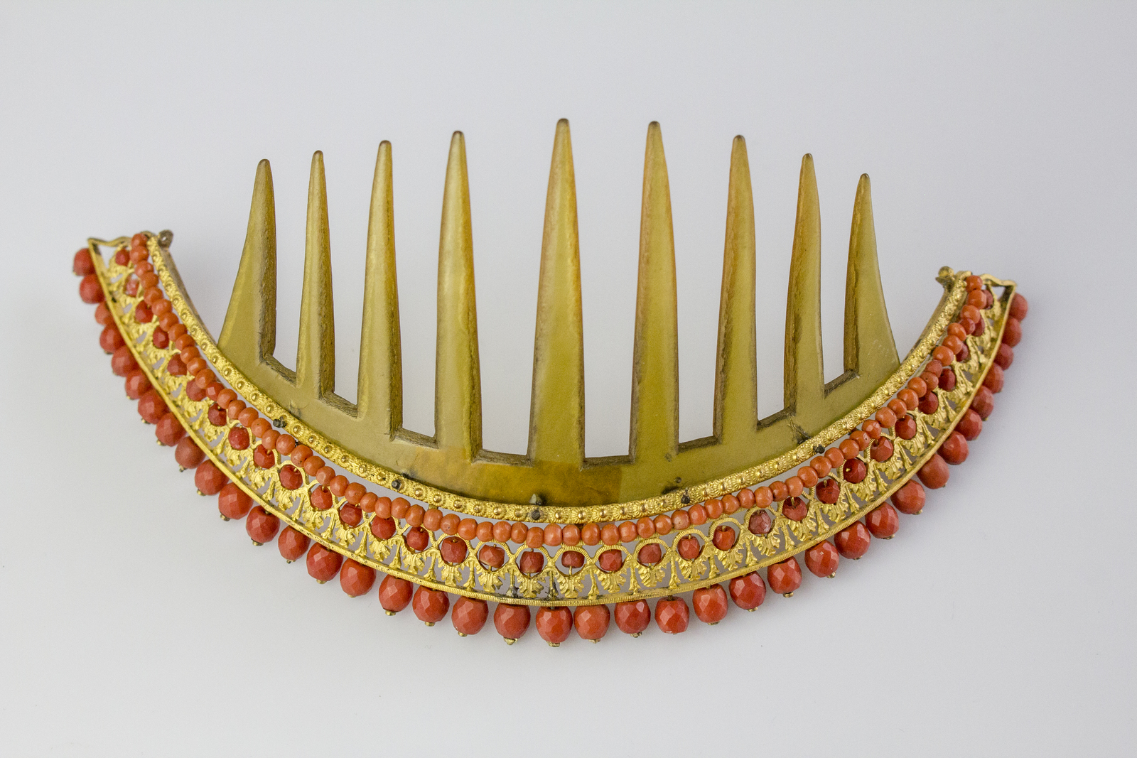 Diadema a pettine, francese stile impero in corallo e tartaruga. . . [Nessun...
