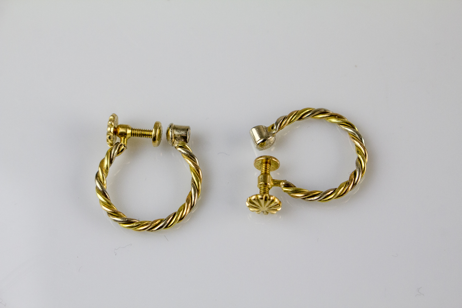 Orecchini in oro 18kt a tre colori a torchon, gr 5.25. Diamanti cts 0.15. . ....