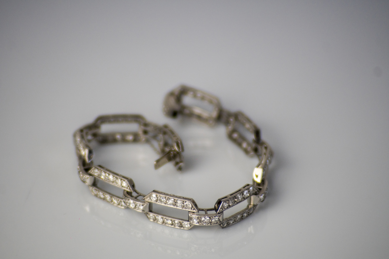 Bracciale art decò in platino, gr totali 22.17. Diamanti ouit ouit cts 2.50...