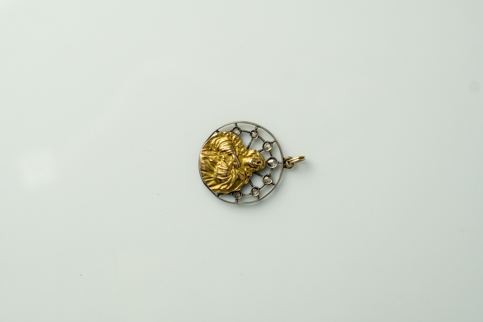[Nessun Autore] Gold and silver with rose cut diamonds pendent. . .
