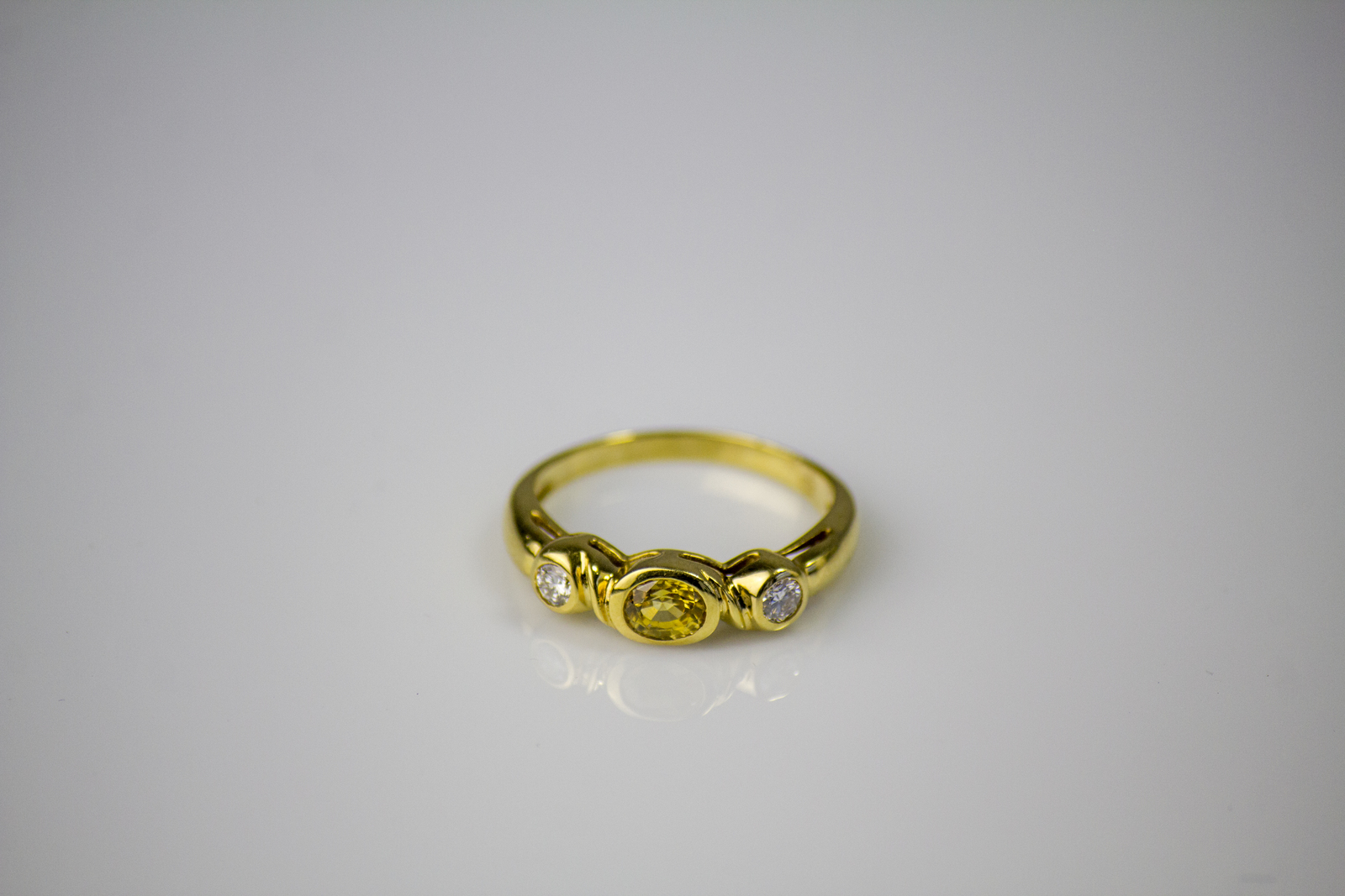 [Nessun Autore] 18kt yellow gold ring, gr 4. Yellow sapphire cts 0.92. Diamonds cts 0.11. . .