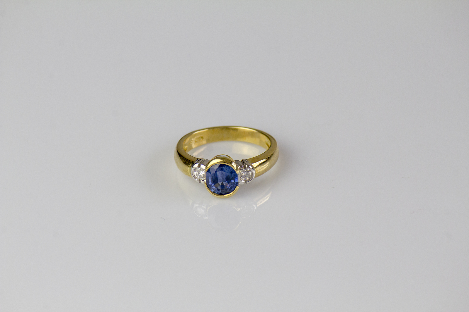 [Nessun Autore] Yellow and white 18kt gold ring, gr 5.45. Sapphire cts 1.65 approx. Diamonds cts 0.22. . .