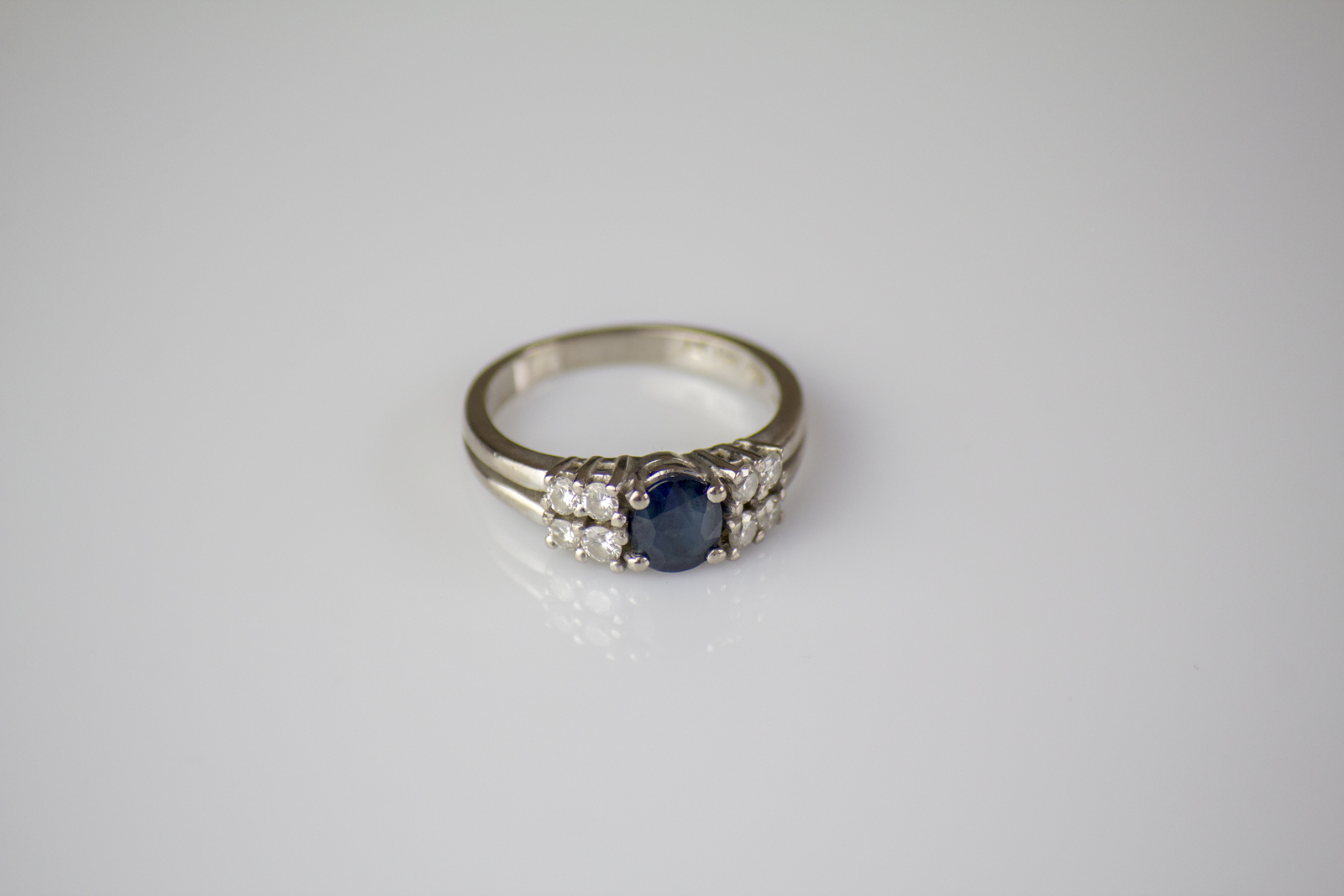 [Nessun Autore] 18kt white gold ring, gr 4.26. Sapphire cts 0.35. Diamonds cts 0.13. . .