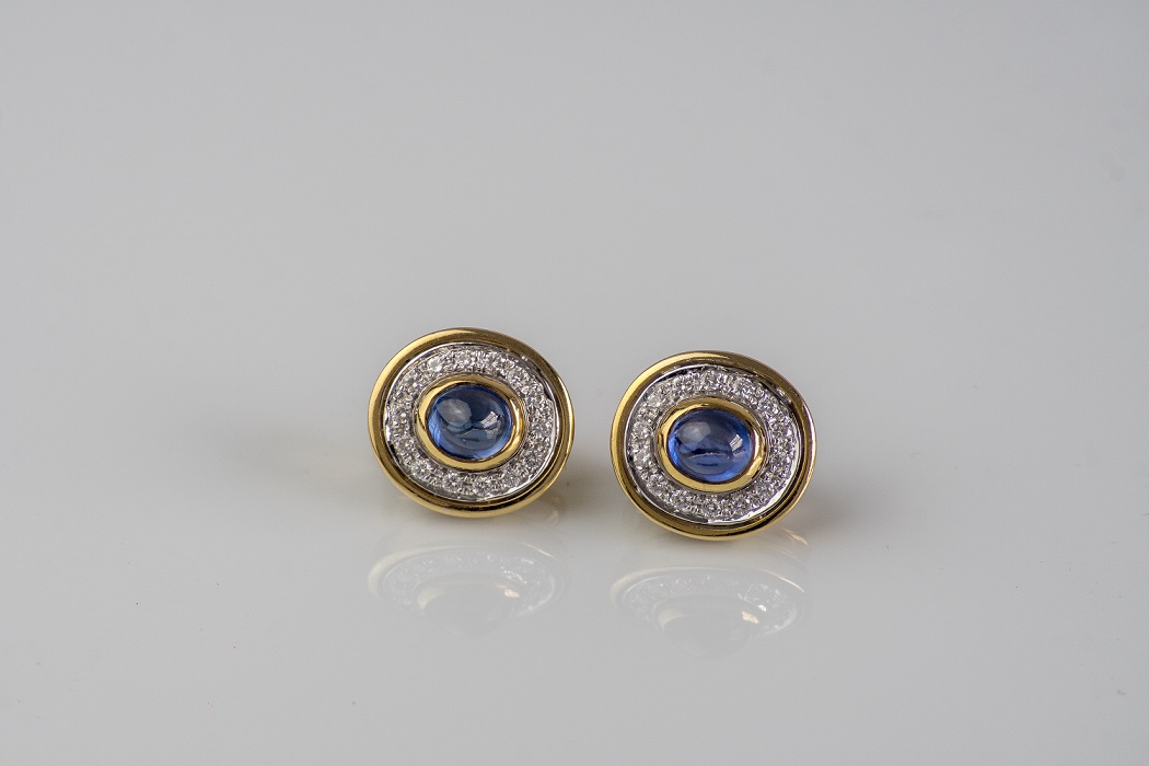 [Nessun Autore] 18kt yellow gold earrings, gr 12.60. Sapphires cts 4.25. Diamonds cts 0.49. . .