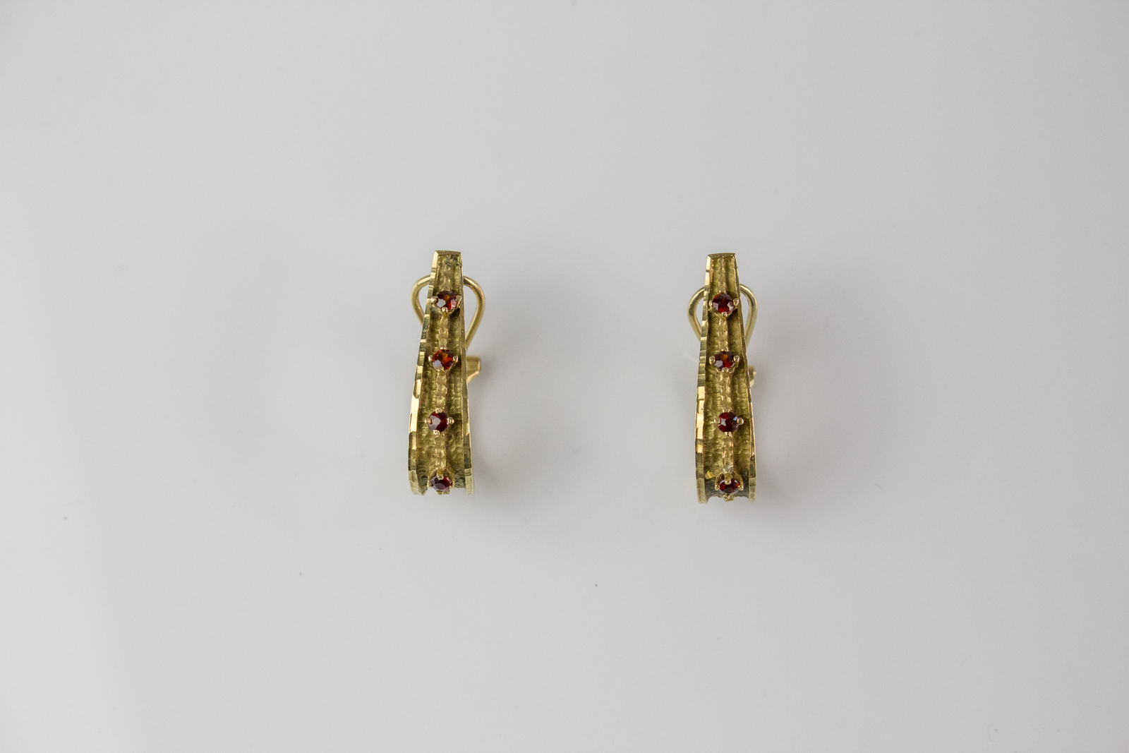 [Nessun Autore] 18kt gold earrings with small garnets, gr 6.25. . .